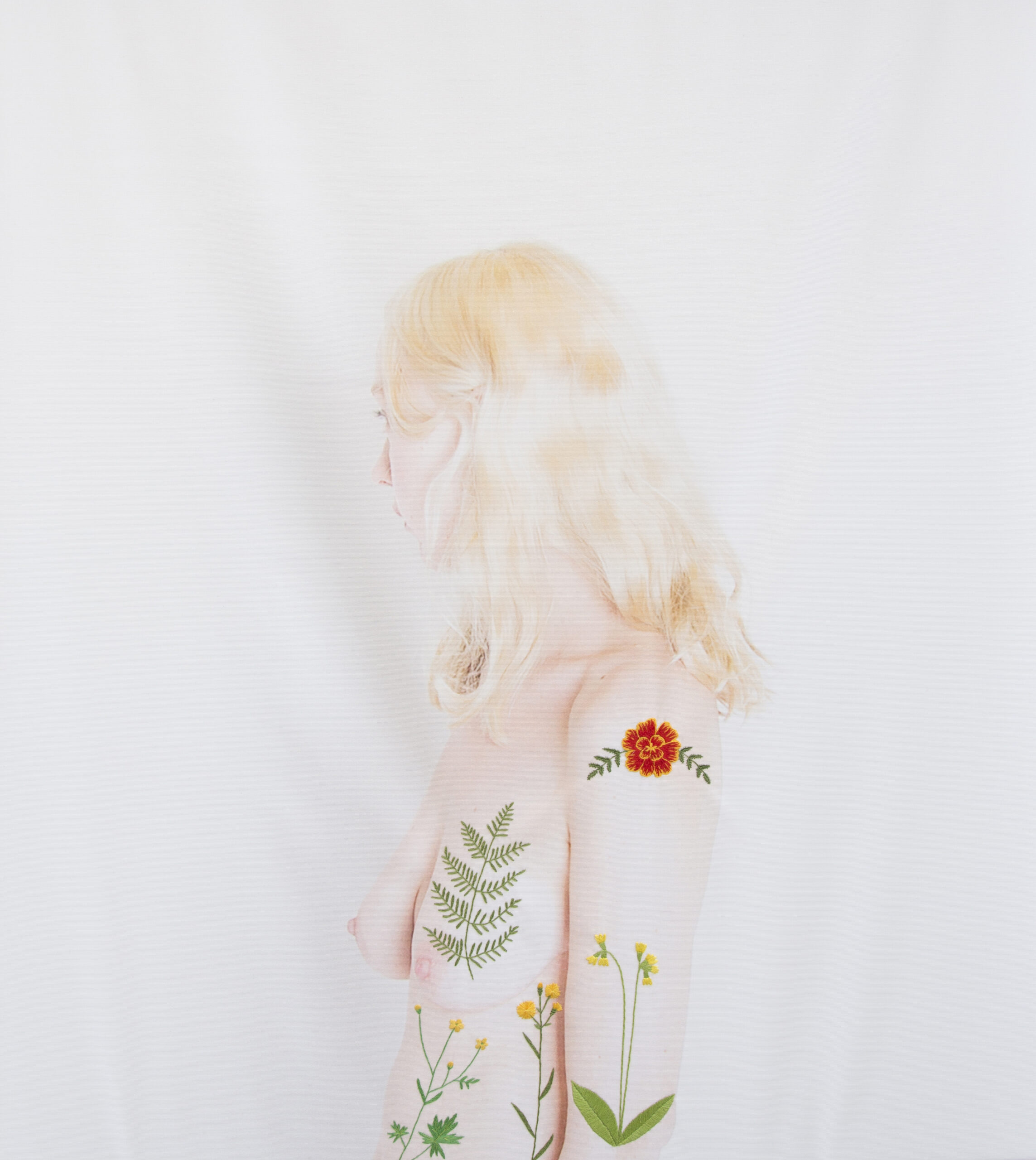 Med stor hantverksskicklighet, tålamod och många små precisa stygn bjuds vi in till ett personligt, känsligt och självutlämnande arbete. Hennes verk lyser i de klaraste färger, utav kärlek till de porträtterade personerna, växterna som symboliserar deras olika egenskaper samt till själva hantverket i sig – handens arbete med nål och tråd.